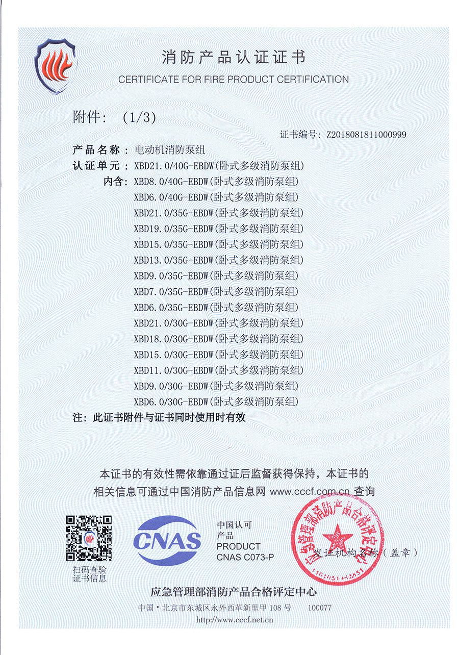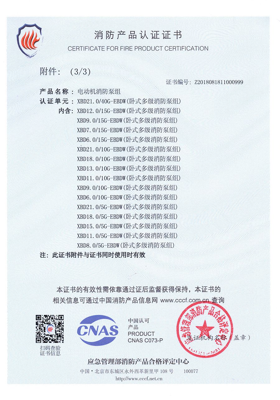 臥式多級EBDW-消防產(chǎn)品認證證書(shū)