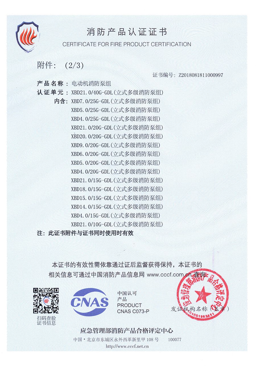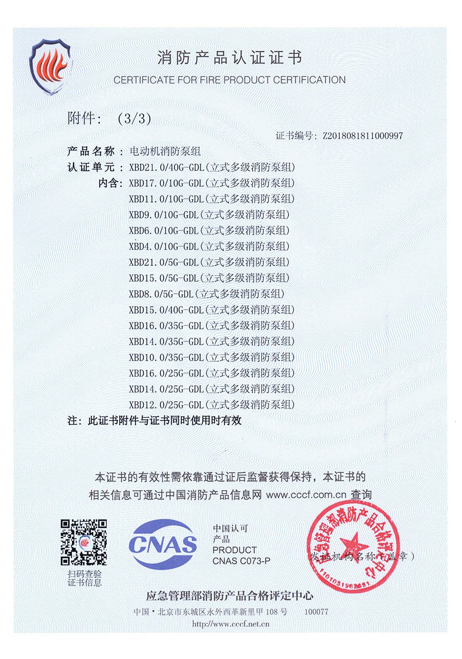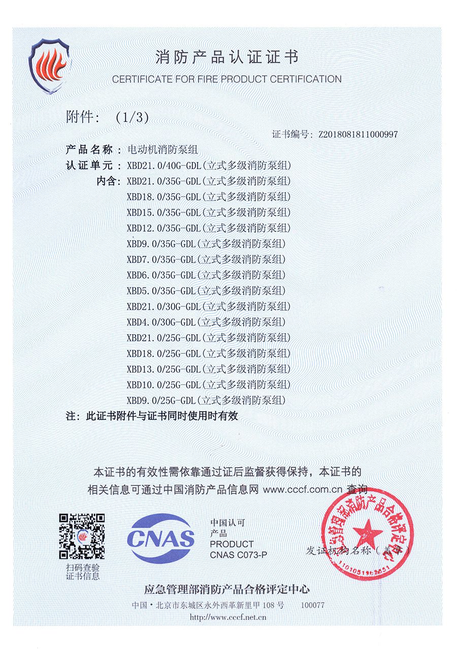 立式多級GDL-消防產(chǎn)品認證證書(shū)