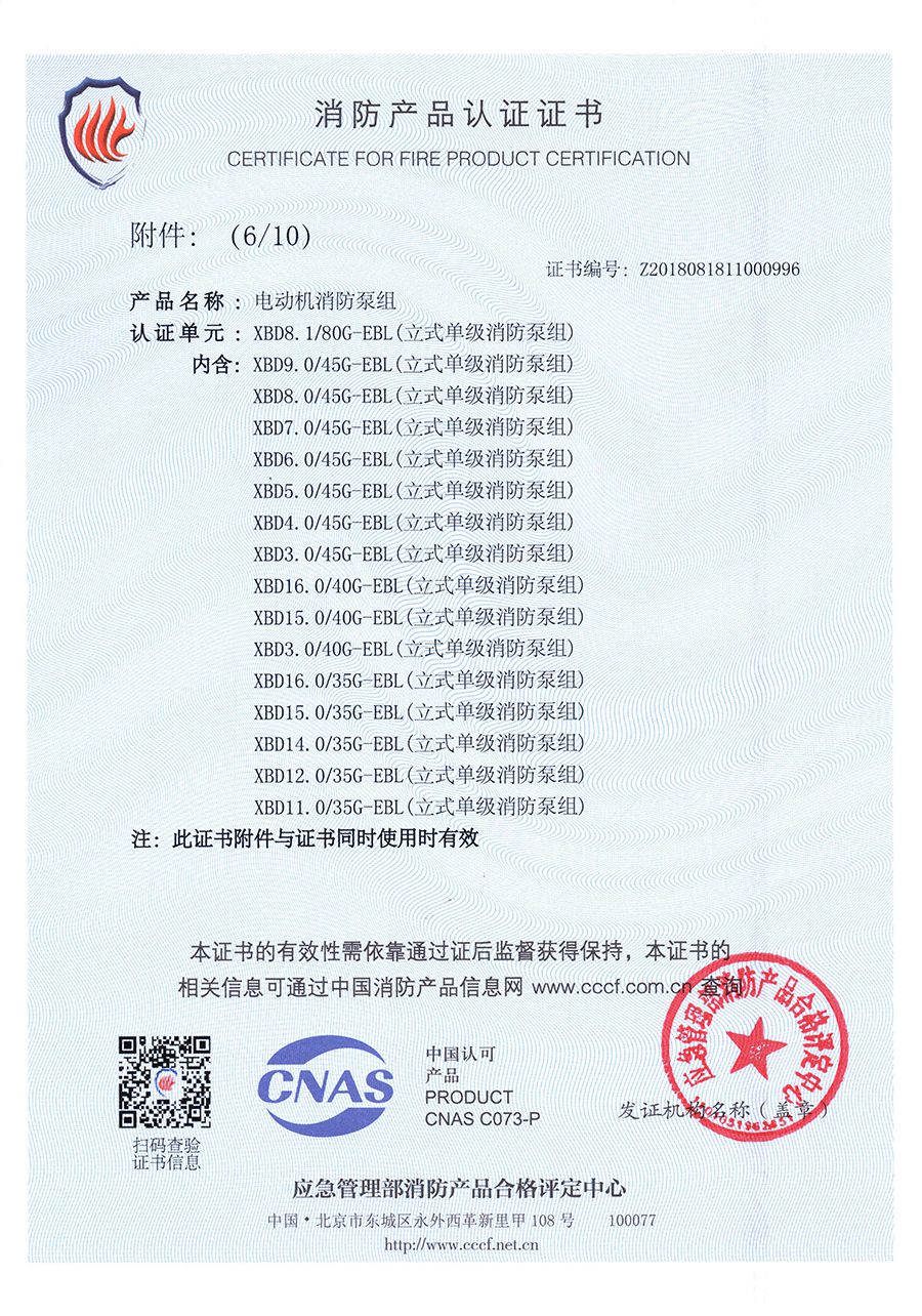 立式單級EBL-消防產(chǎn)品認證證書(shū)
