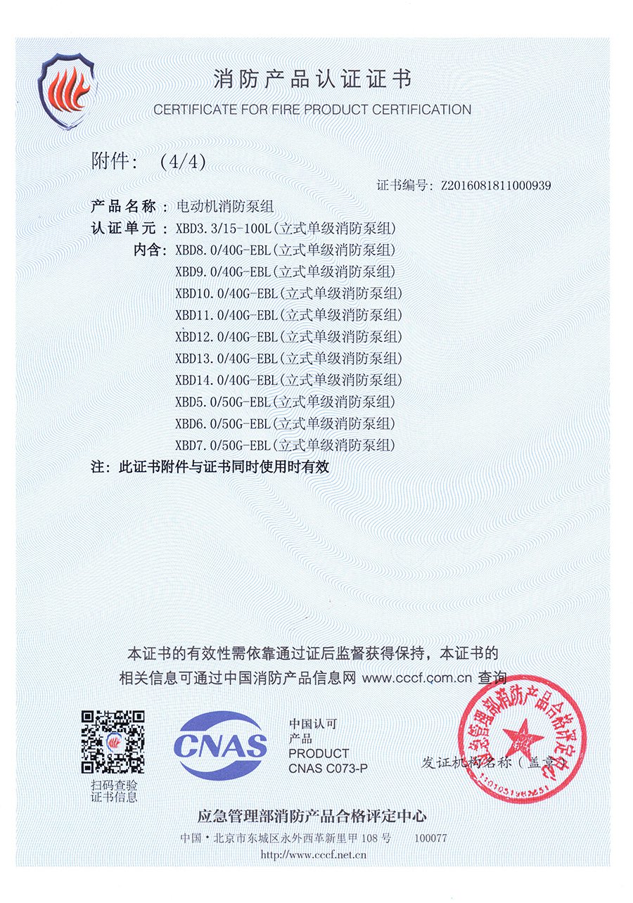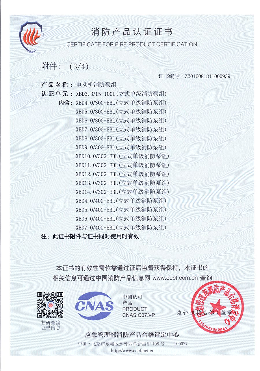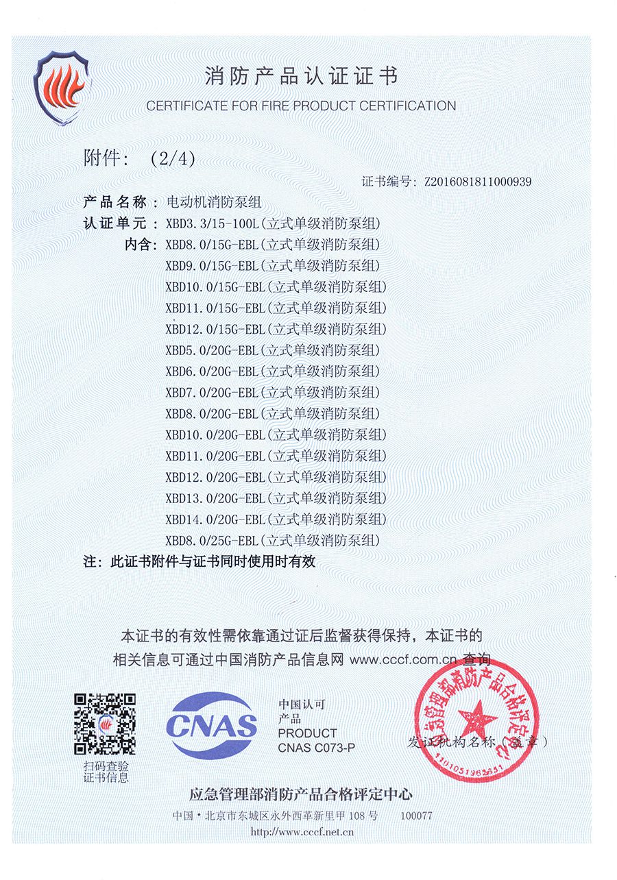 立式單級EBL-消防產(chǎn)品認證證書(shū)