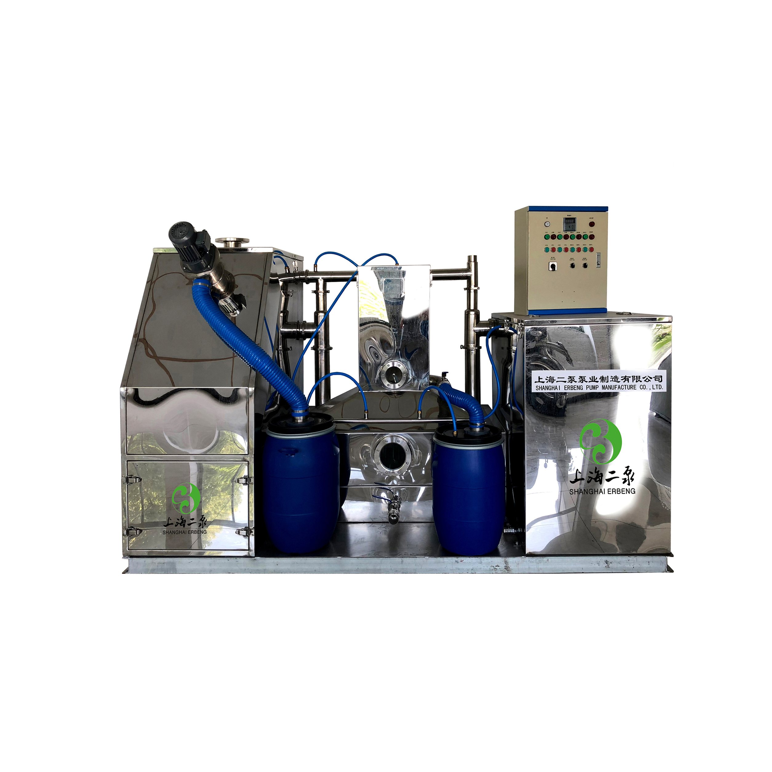 排放的污水從進(jìn)水口進(jìn)入除渣倉的自動(dòng)除渣裝置內,將顆粒直徑大于3mm的殘渣過(guò)濾出來(lái),直接進(jìn)入集渣桶內;污水再流入沉淀倉內,小顆粒以及污泥等沉淀下來(lái),由排泥裝置定期清理;此時(shí)廢棄油脂以及開(kāi)始漂浮與水面上;污水流進(jìn)油水分離倉內,由自動(dòng)刮油裝置將廢棄油脂送入集油倉,集油倉內裝有自動(dòng)恒溫裝置,確保油脂不會(huì )凝固,集油倉內的廢棄油脂可根據用戶(hù)實(shí)際用量定期排放收集;經(jīng)油水分離之后的污水進(jìn)入虹吸倉,此倉內裝有反沖洗裝置,定期對設備內部以及主要部件進(jìn)行清洗;此后,污水進(jìn)入污水儲水倉,由自動(dòng)強排裝置根據液位變送器傳遞的上下限位信號將污水排入市政管網(wǎng),此時(shí)的污水符合國家排放標準。