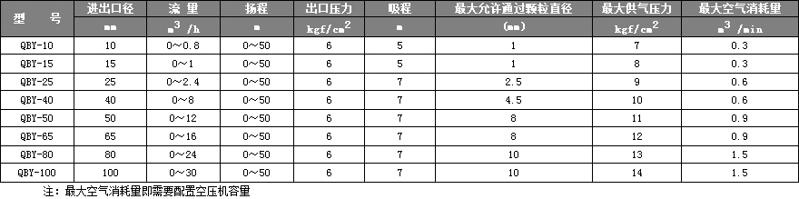 注:空氣消耗量即需要配置空壓機容量
