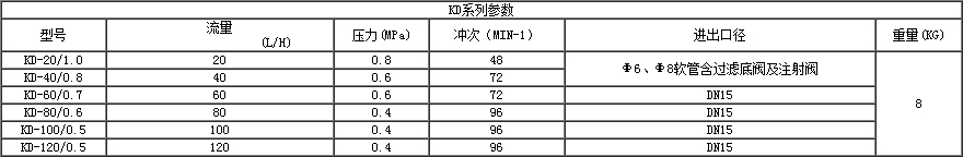 上海二泵KD系列產(chǎn)品,是由電機驅動(dòng)的機械隔膜式計量泵,適用于底壓力場(chǎng)合的流體計量,有多種材質(zhì)泵頭可選,膜片統一采用多層復合PTFE材質(zhì)。因其具有很高的計量精度和穩定性能及 較高的使用工求,而廣泛應用于污水處理,食品劑添加,各種特殊介質(zhì)的輸送。